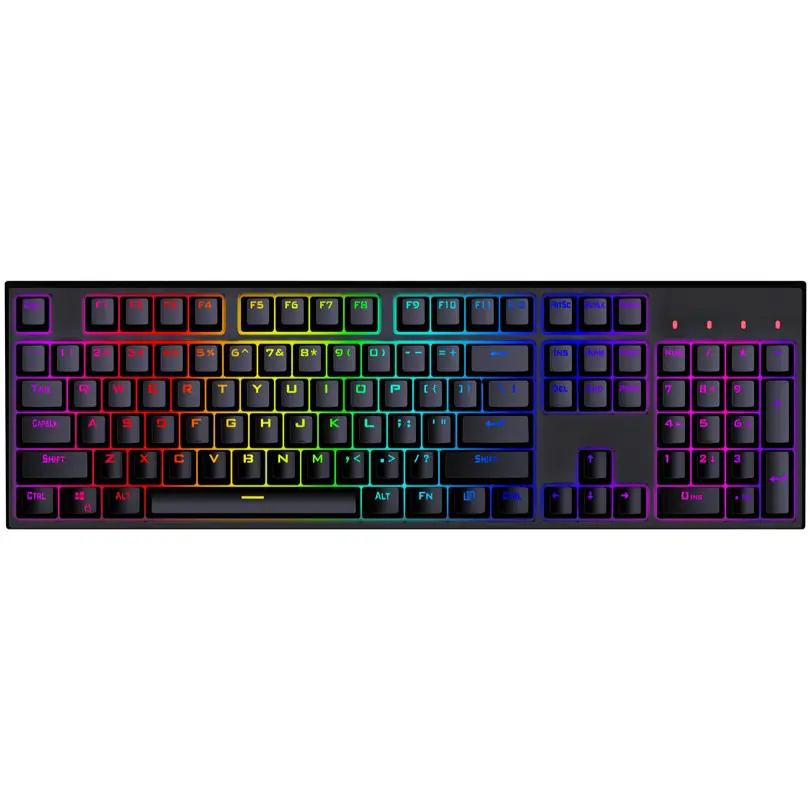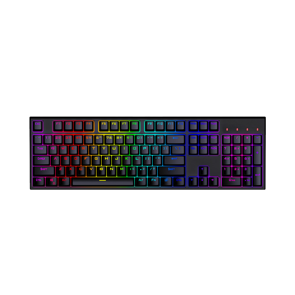 The First Player MK8 Titan RGB Mechanical Gaming Keyboard is a full-size wired mechanical keyboard designed to deliver high performance and customizable aesthetics for PC gamers and everyday users alike. Featuring a standard 104-key layout with 16.8 million RGB lighting effects, this keyboard elevates your setup with dynamic lighting and adaptable style.
