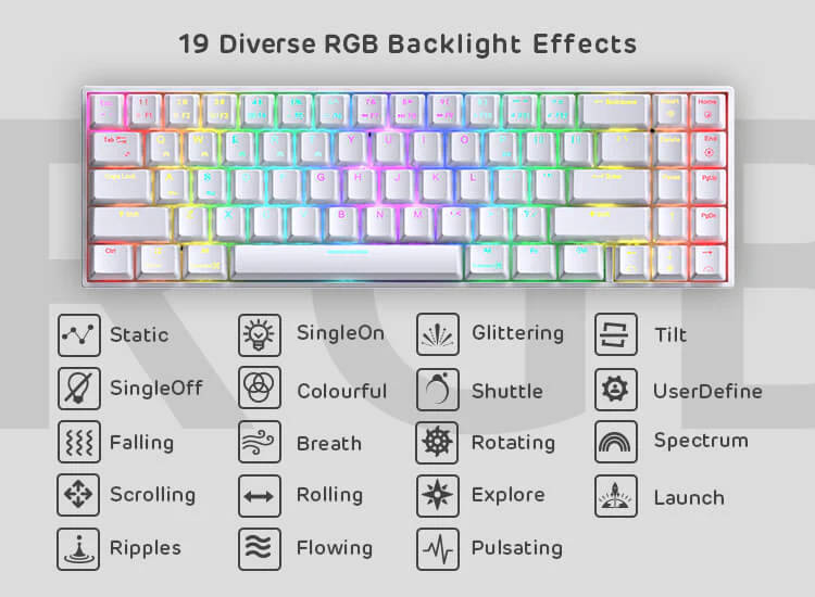 The keyboard supports RGB backlighting with numerous lighting modes, allowing you to customize the visual look of your gaming or work setup. The vibrant RGB effects not only enhance aesthetics but also improve visibility in low-light situations.